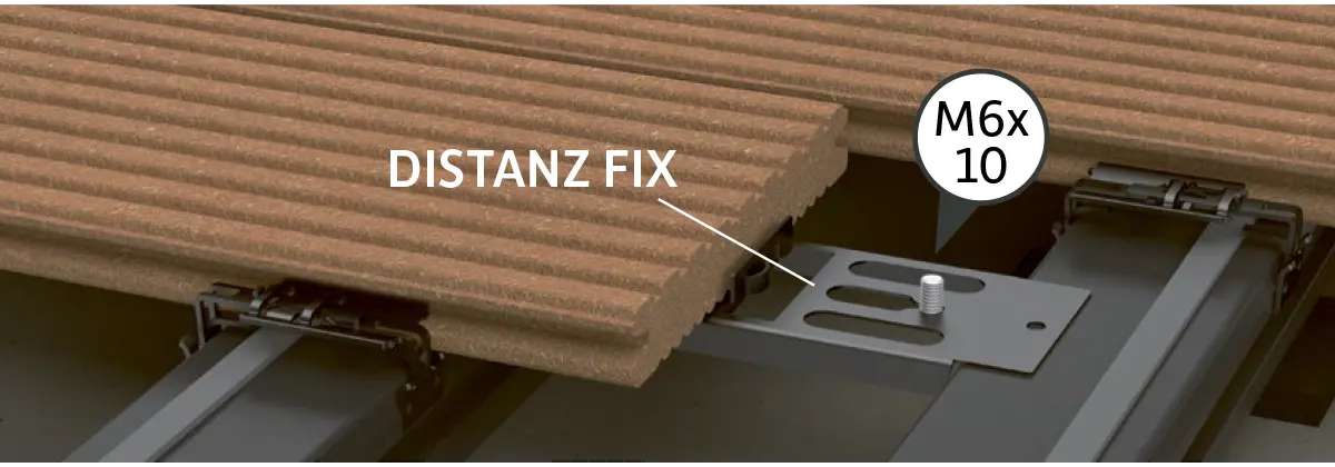 Our VARIO FIX substructure system offers you a consistent and well thought-out system in two variants, which is characterised by simple handling, extremely flexible and infinitely variable height adjustment. Thanks to the 360° spherical head, an angle of inclination of up to 10 % can be realised without any problems.