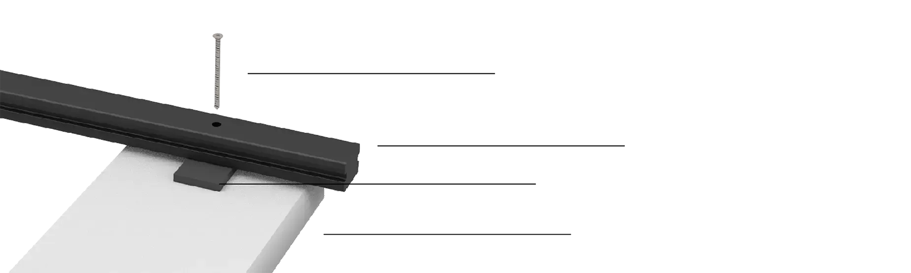 • For oblique or mitre cuts, short pieces of board (those that can be attached to the substructure with fewer than three locking clamps or clips) are screwed from above to the construction beam (M6 x 40 mm screw).