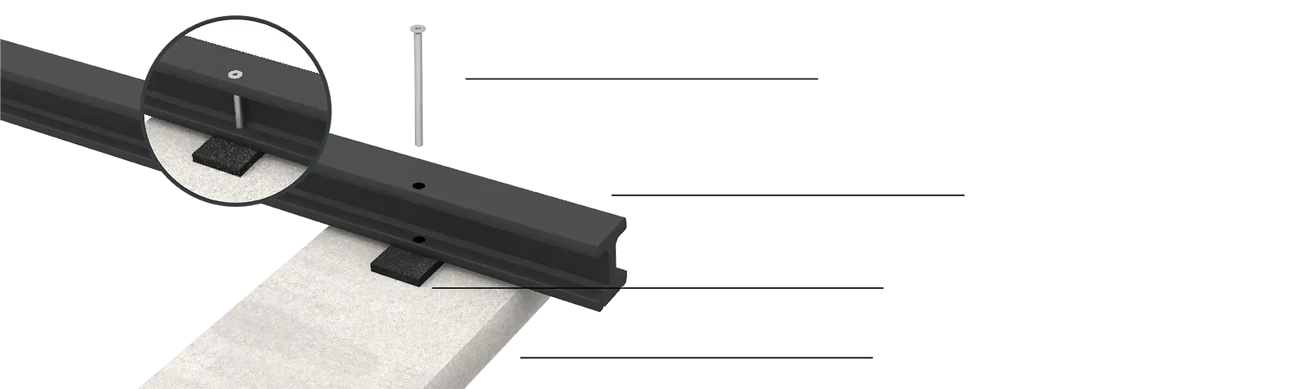 • A prerequisite for the cross bracing is a solid ground (concrete, concrete kerbstone). During installation, construction takes place on 20 mm high rubber pads, which are installed at the intersection points of the construction beams to ensure the minimum distance.