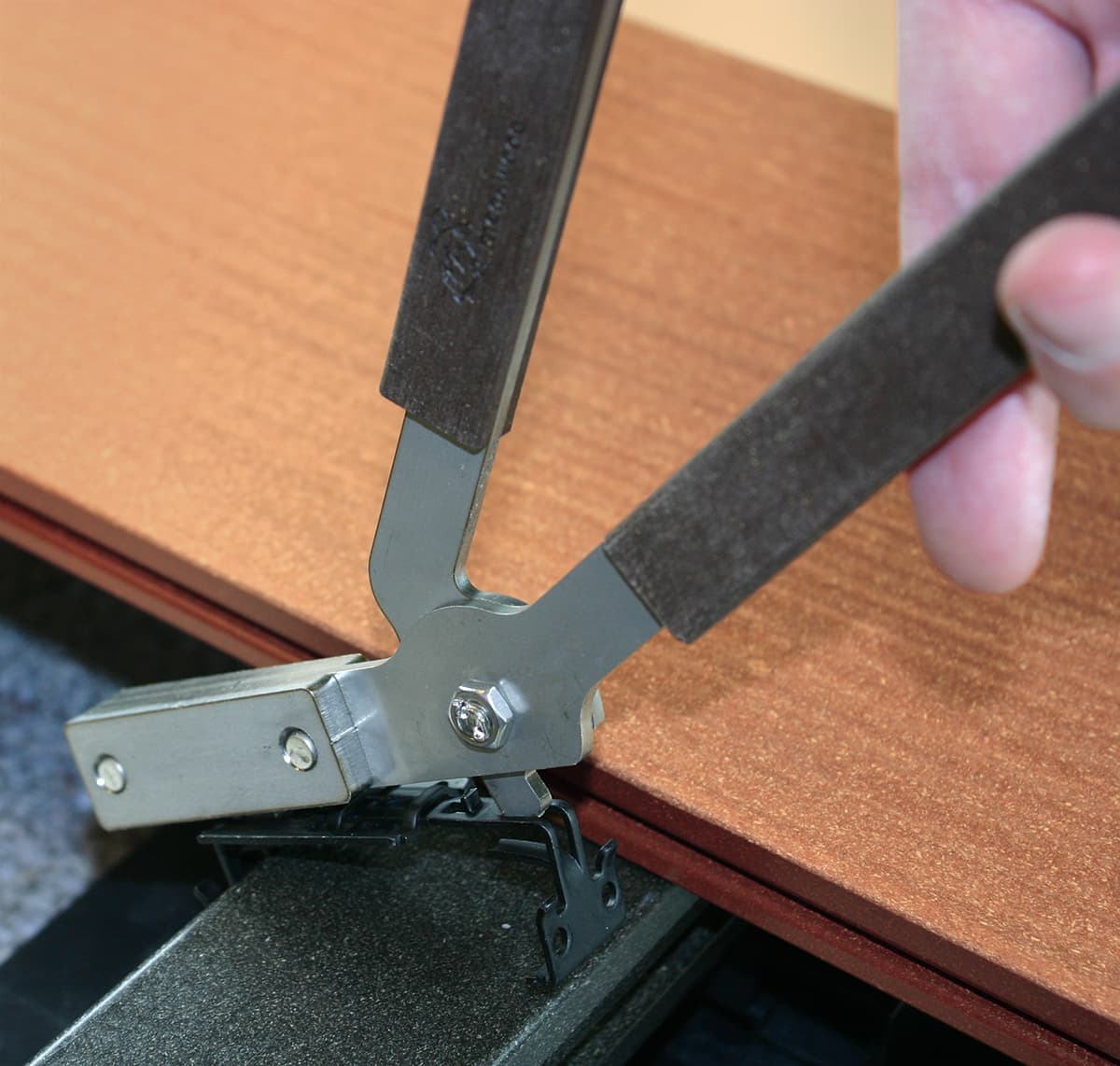 nosnou konstrukci“, říká Patrick Stark. Tím myslí promyšlený konstrukční systém „Prkna se pokládají pohodlně. Stačí nastavit výšku, stlouct trámky a speciálními kleštěmi spojit prkna skrytým spojem.“ Stejným způsobem stavitel postavil během