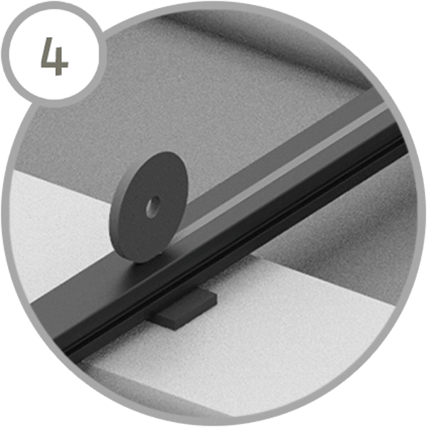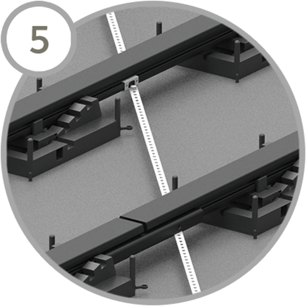 - Konstruktionsbalken (40 x 60 mm) mit der glatten Seite nach oben in die FIX STEP Aufnahmen einklicken.