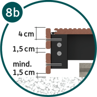 - Bei Terrassenlängen über 3,6 m im Bereich der Stoßfuge der Glattkantbretter FIX STEP Randplatte DUO platzieren.