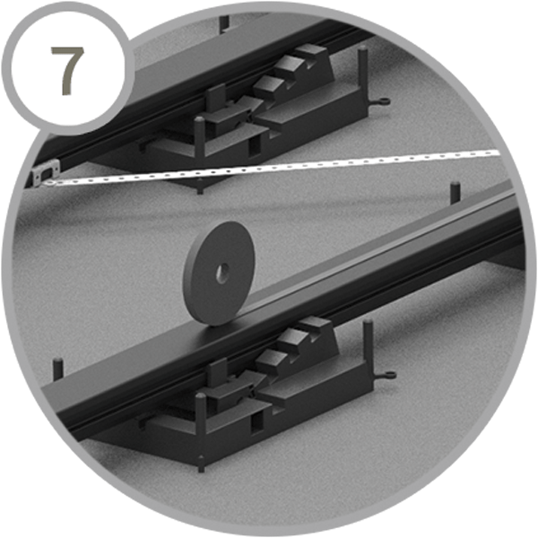 - FIX STEP Aufnahmen mittig mit einem Streifen Sicherungsband bekleben, in die Platten einklicken und platzieren, auf gleiche Höheneinstellung achten.