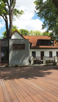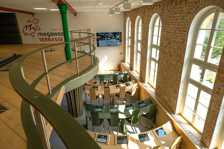 Der Lindenhof ist das Domizil für Besucher unseres Unternehmens, für Teilnehmer an Seminaren und Tagungen. Sie treffen hier auf die Einsatzvielfalt und oft unerwartete Formgebung des bearbeiteten Werkstoffes. Empfangen vom warmen Eindruck der Fassadenverkleidung, begrüßt vom Türgriff am Haupteingang, erkennen Sie, dass Stühle, Tische, Schränke und Schlafmöbel in überzeugendem Design aus megawood® gefertigt wurden. Das dafür kein Baum gefällt wird, symbolisieren die umbauten Linden im Eingangs- und Saunabereich eindrucksvoll. Lassen Sie sich während Ihres Aufenthaltes im Lindenhof von den Einsatzmöglichkeiten faszinieren.