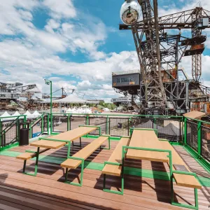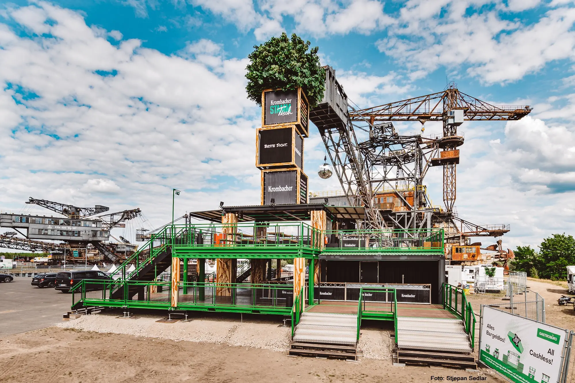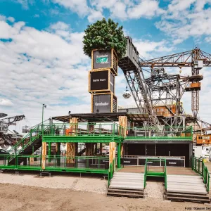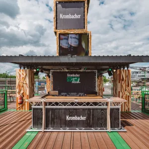 Bereits seit 2022 sind die megawood® Dielen auf dem Krombacher „Stammtisch“ Eventmodul im Einsatz. Mit dabei sind bekannte Festivals wie „Melt“, „Splash“ und „Wacken“, mit Besucherzahlen von bis zu 85.000 Menschen.