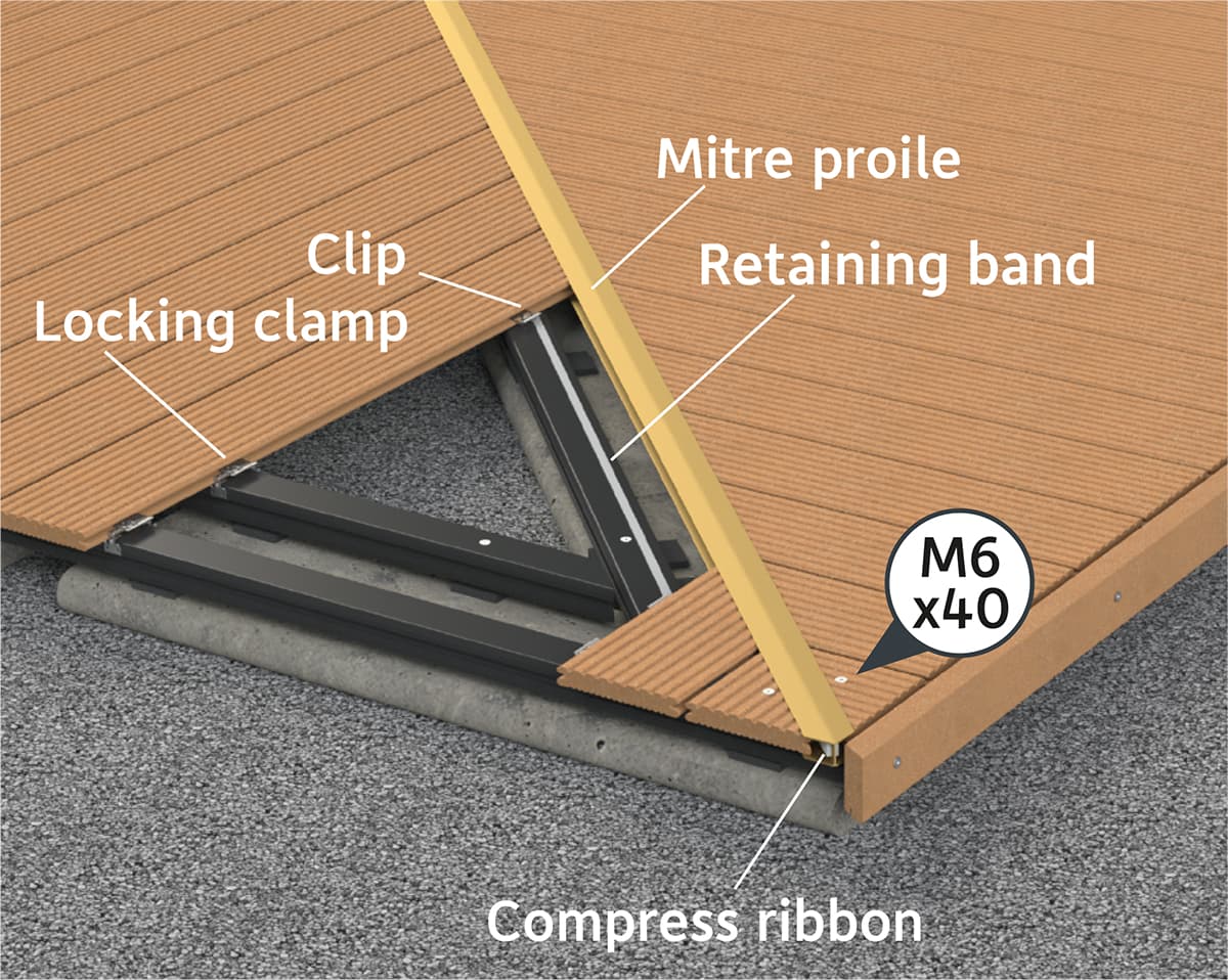 • Insert the board only 10 mm into the mitre profile to ensure expansion.