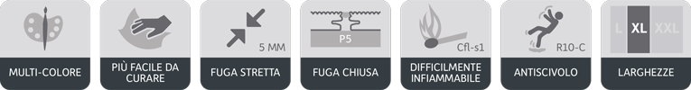 Superficie : unilaterale, scanalata parzialmente con sfumature dicolore, giuntura da 5 mm